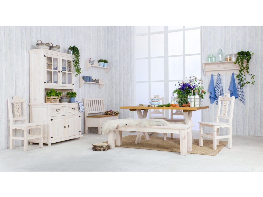 Nábytok WHITE HOME Slim je vysokokvalitný drevený nábytok vyrobený výlučne z masívneho borovicového dreva. O konečnú úpravu nábytku sa postaral prírodný vosk alebo ekologický lak. WHITE HOME je jemný a vkusný nábytok, ktorý vďaka použitiu ručne vyrobeného a špeciálne zdobeného kovania dodá každému interiéru jedinečný šarm. S nábytkom WHITE HOME budú vaše interiéry pôsobiť sviežo, vzdušne a útulne.