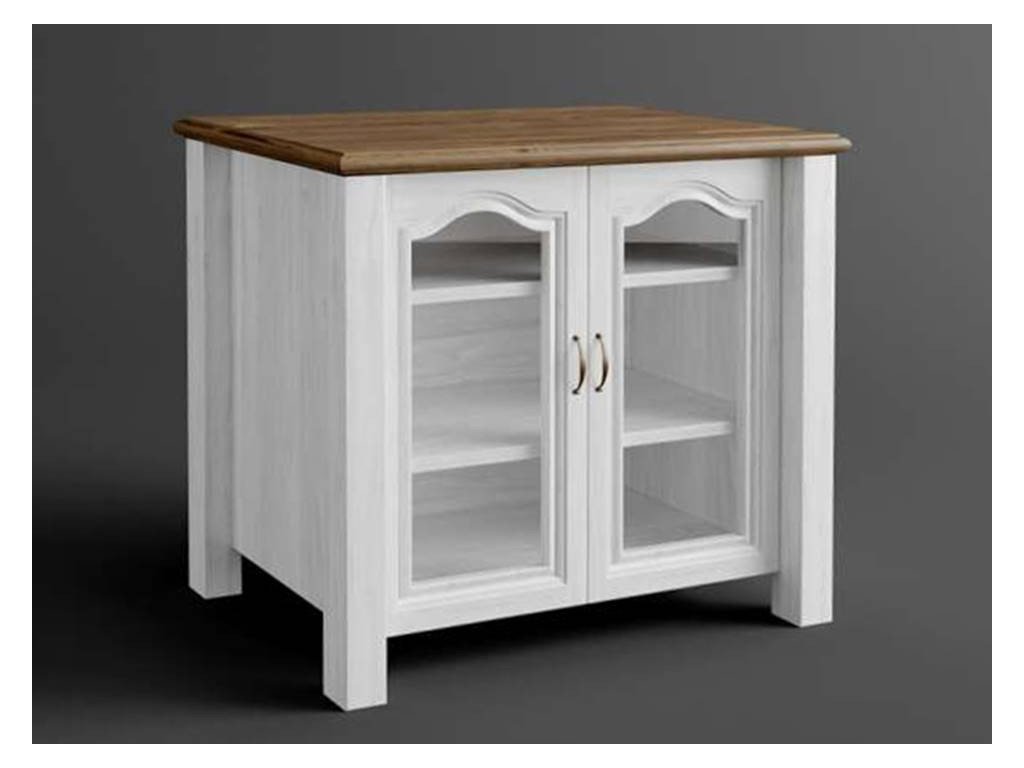 Rustikálna komoda MERIDA so sklenenými dvierkami.