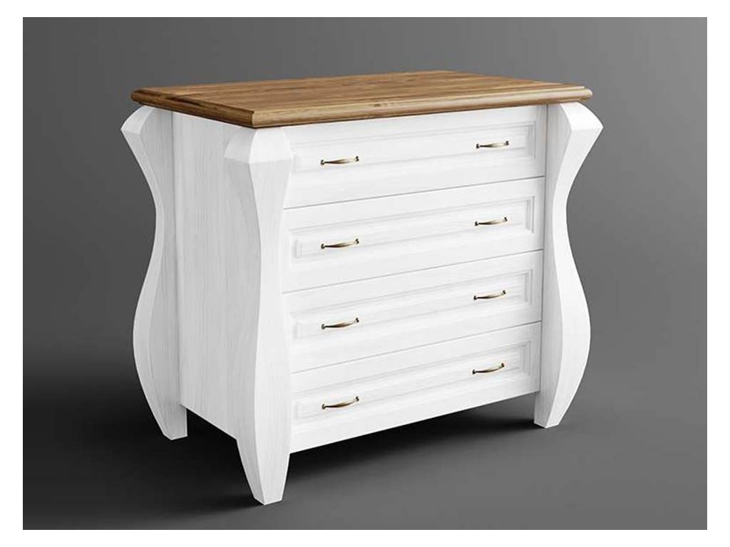 Rustikálna komoda CASSETTE je romantická a veľmi štýlová komoda z masívneho dreva, ktorá vďaka dekoratívnemu frézovaniu, štýlovým nohám a kovaniu zodpovedá obľúbenému romantickému štýlu bývania. Komoda pôsobí veľmi nadčasovo a elegantne.