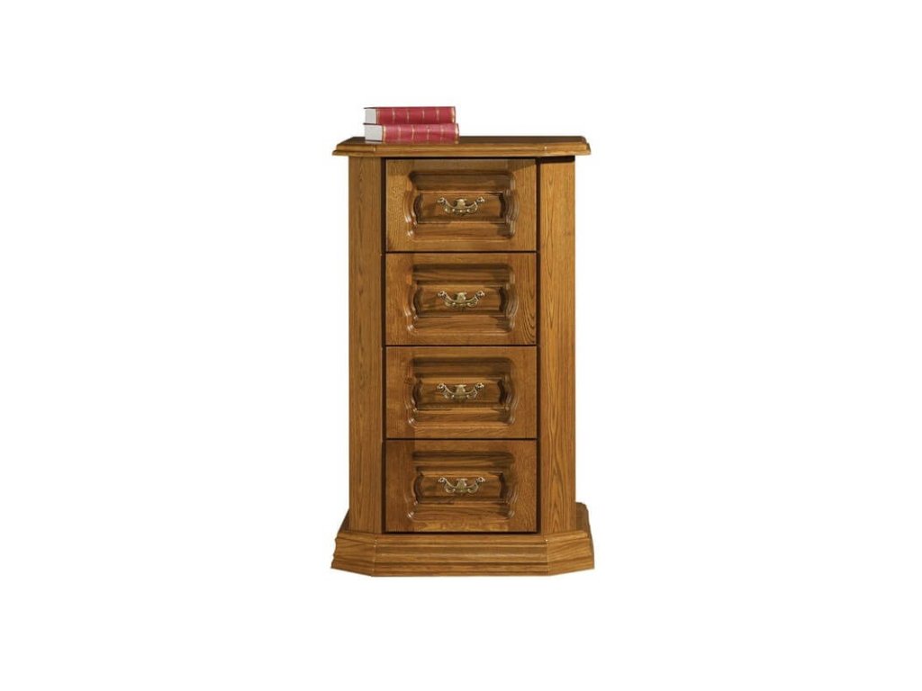 Rustikálna komoda KINGA je veľmi pekný kus nábytku z kolekcie KINGA. Zásuvková komoda má každú zásuvku ozdobne lemovanú a navyše zdobenú štýlovými úchytkami. Rustikálna komoda stojí na vyrezávanom podstavci, ktorý je rovnako ako vrchná doska vyrobený z lakovanej MDF. Boky komody sú vyrobené z laminátu, predná časť je z dubového masívu. Rustikálnu komodu so zásuvkami môžete kombinovať s iným rustikálnym nábytkom z kolekcie KINGA.