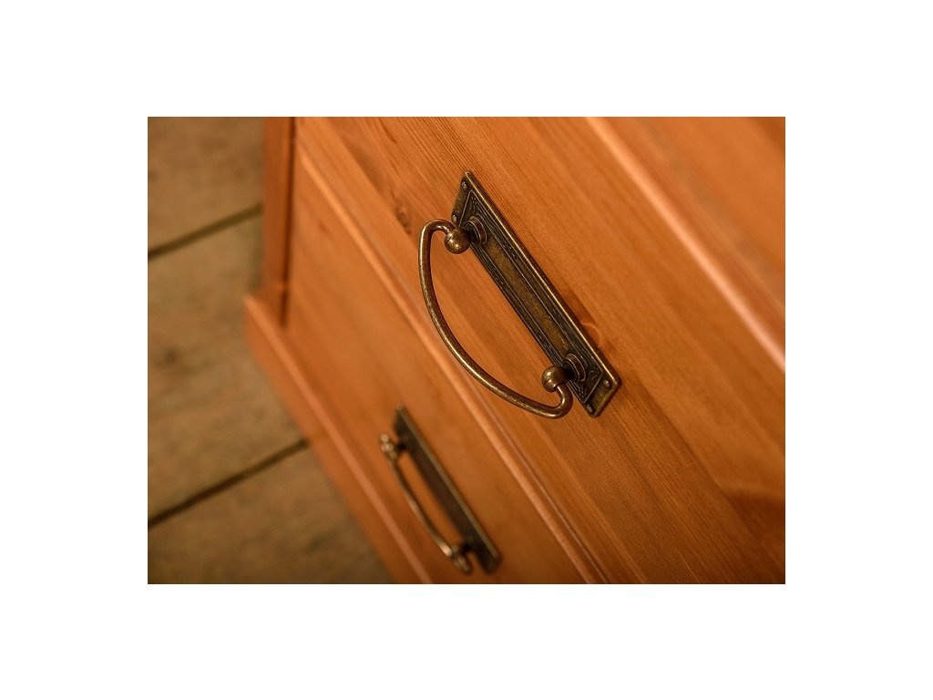 Rustikálna komoda z masívneho dreva TOSKANIA je vyrobená z masívnej fínskej borovice a morená na teplý medový odtieň, ktorý dodá interiéru hrejivé čaro domova. Fínska borovica vyniká svojou odolnosťou a krásnou štruktúrou dreva, ktorú cítiť pri každom dotyku. Dná zásuviek a zadná časť komody sú vyrobené z drevovláknitej dosky HDF.
