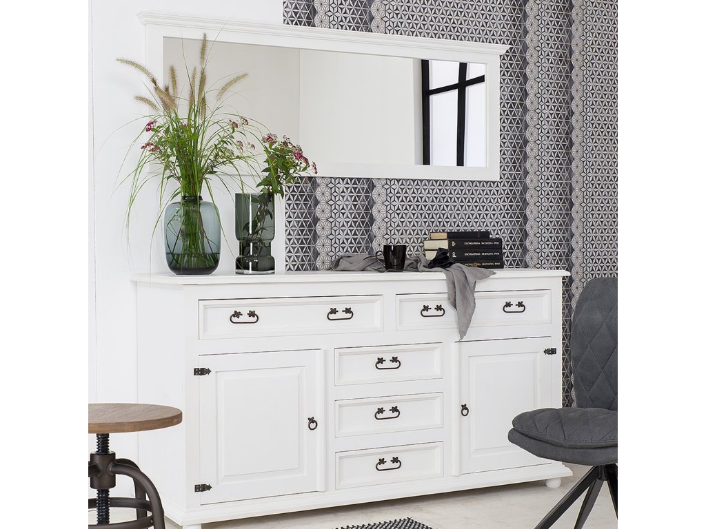 Komoda WHITE HOME COM 06 je reprezentatívna luxusná drevená komoda s patinovým efektom, ktorá vás zaujme nielen svojím dominantným vzhľadom, ale aj kvalitným dizajnom, ktorý oceníte v interiéri pracovne, kancelárie, spálne, obývacej izby a kuchyne, kde ju môžete dokonale využiť ako drevený príborník.