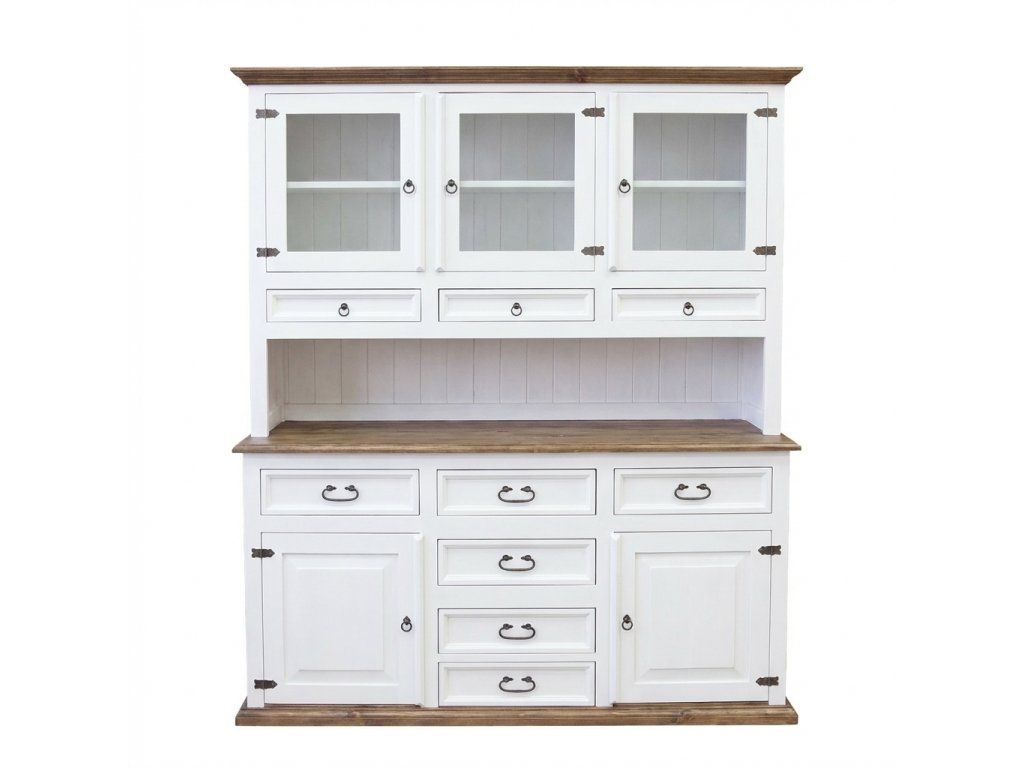 Rustikálna kredenc SWEET HOME je masívna kredenc alebo skriňa do jedálne aj kuchyne, vyrobená z masívneho borovicového dreva a ošetrená bielou vodou riediteľnou farbou. Hnedé časti môžu byť ošetrené voskom alebo lakom. Z dreva sú vyrobené aj koľajničky na zásuvky a zadná časť, vďaka čomu pôsobí vitrína naozaj luxusne a štýlovo.