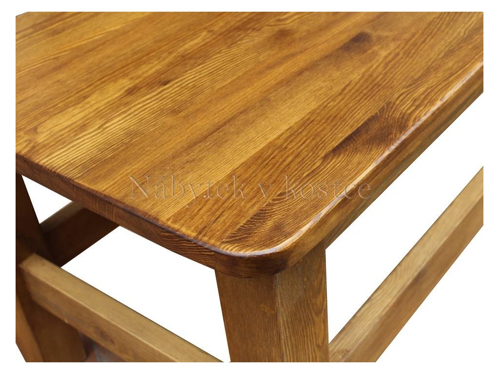Rustikálna lavica MEXICANA bez operadla je obľúbeným produktom našich stálych zákazníkov. Lavica je vyrobená z masívneho borovicového dreva a ošetrená voskom alebo lakom podľa vášho výberu (svetlohnedý med, orech, gaštan, tmavý dub, dymový dub alebo bezfarebný vosk). Lavica je spojená 4 vzperami (6 cm x 2,5 cm), masívne nohy majú rozmery 6x6 cm.