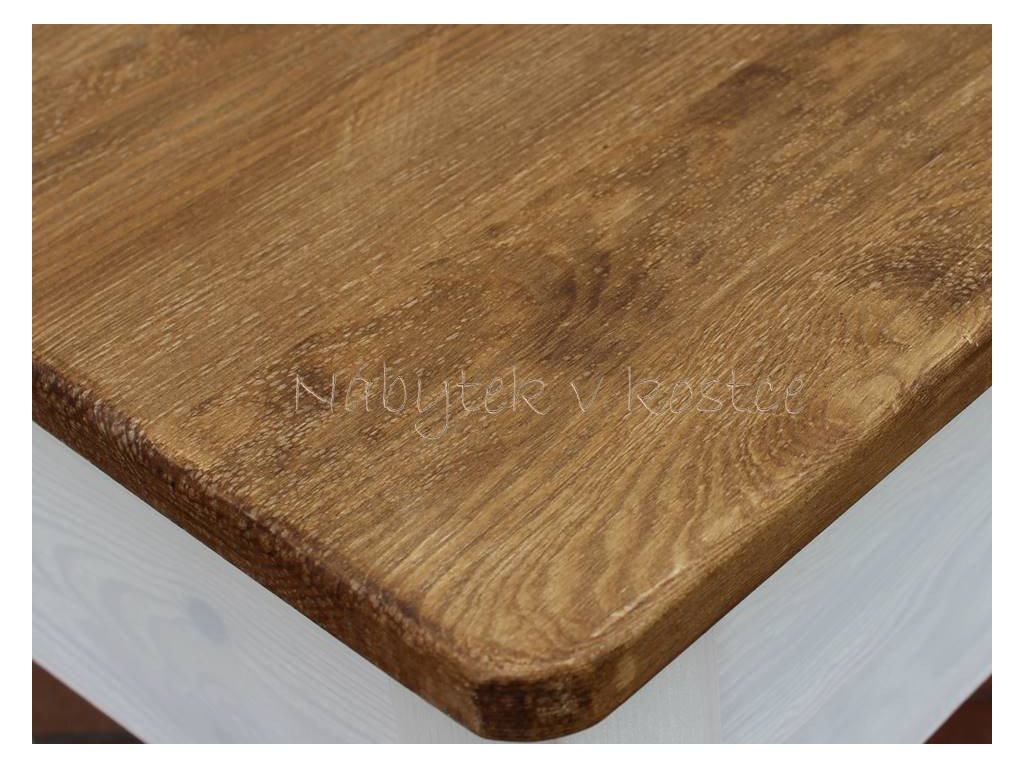 Rustikálna lavica SWEET HOME s úložným priestorom je vyrobený z masívneho borovicového dreva a je ošetrený bielou vodou riediteľnou farbou. Vrchná doska je ošetrená farebným pigmentom v odtieni svetlej medovej hnedej a následne nalakovaná.