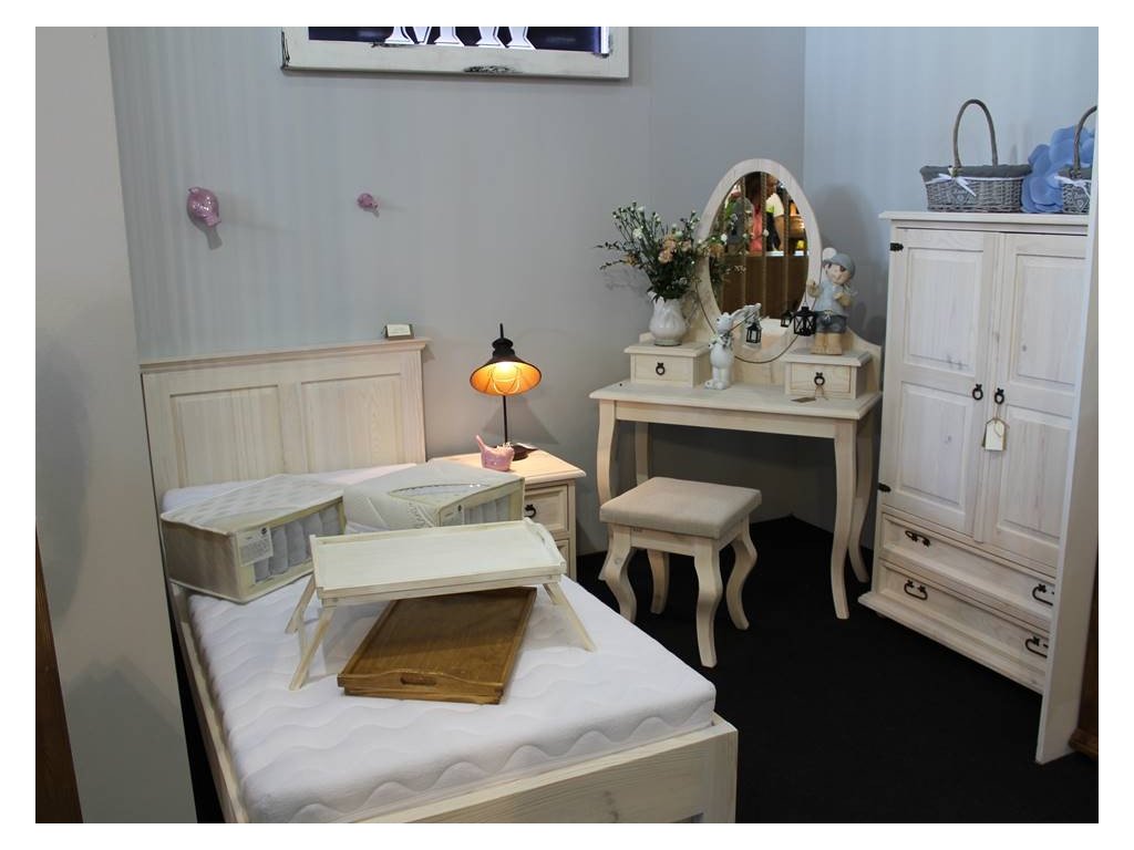 Nábytok WHITE HOME je vyrobený z masívneho borovicového dreva, len chrbty komôd sú vyrobené zo sololitu a chrbty písacích stolov z prírodnej dyhy. Zásuvky nemajú koľajničky, ale ich absencia nebráni plynulému vysúvaniu. Konečná povrchová úprava nábytku spočíva v ručnom nanášaní čistých prírodných voskov, vďaka ktorým je nábytok krásny a hodvábne jemný. Vosk sa na konzervovanie dreva používa už od stredoveku. Je to prírodný materiál, ktorý má priaznivé účinky na drevo a drevený nábytok. Efektný vzhľad nábytku dotvára štýlové kovanie a závesy v čiernej farbe.