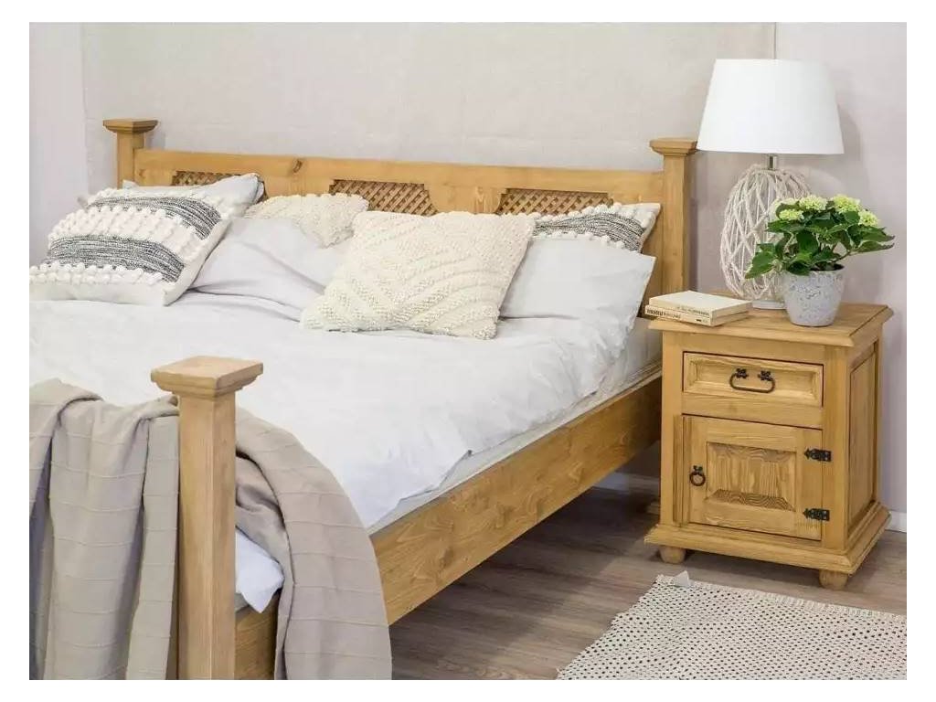 Rustikálna posteľ CORDOBA je vyrobená z masívneho borovicového dreva, ktoré do vášho domova prinesie teplé tóny a nádhernú vôňu. Použitie vysokokvalitného vosku na prírodnej báze tiež pomáha chrániť nábytok a dodáva drevu jeho osobitnú krásu.