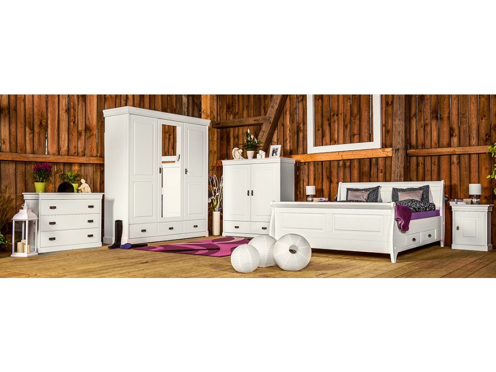 Rustikálna posteľ z masívu TOSKANIA je vyrobená z masívnej fínskej borovice a ošetrená bielou vodou riediteľnou farbou, ktorá rozžiari každý interiér vášho domova. Fínska borovica vyniká svojou odolnosťou a krásnou štruktúrou dreva, ktorú cítiť pri každom dotyku. Dná zásuviek sú vyrobené z drevovláknitej dosky HDF.