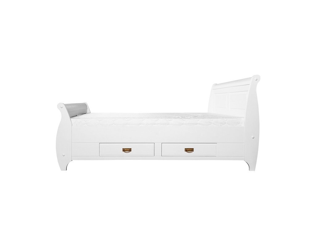 Rustikálna posteľ z masívu TOSKANIA je vyrobená z masívnej fínskej borovice a ošetrená bielou vodou riediteľnou farbou, ktorá rozžiari každý interiér vášho domova. Fínska borovica vyniká svojou odolnosťou a krásnou štruktúrou dreva, ktorú cítiť pri každom dotyku. Dná zásuviek sú vyrobené z drevovláknitej dosky HDF.