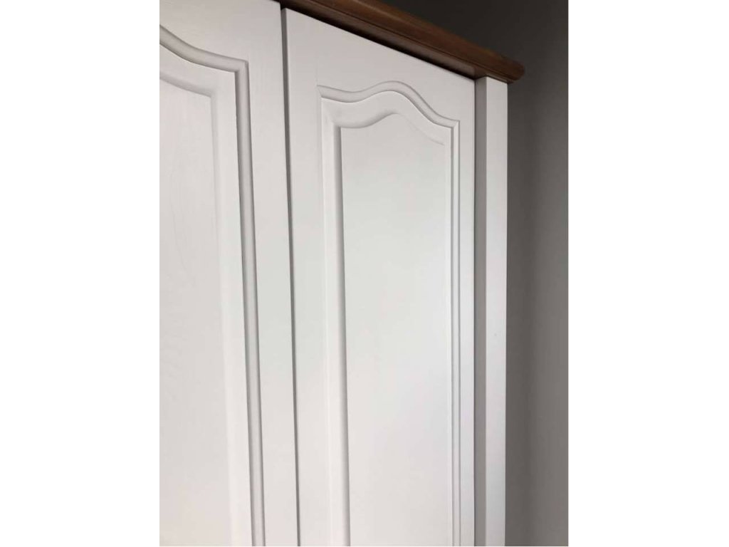 Rustikálna skriňa AUSTIN MERIDA je vyrobená z masívneho borovicového dreva, ošetrená farbou a následne nalakovaná. Šatníková skriňa má šatníkovú tyč v dvojdverovej časti a police v jednodverovej časti.