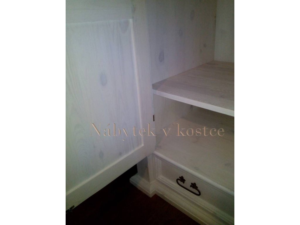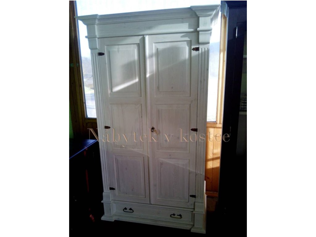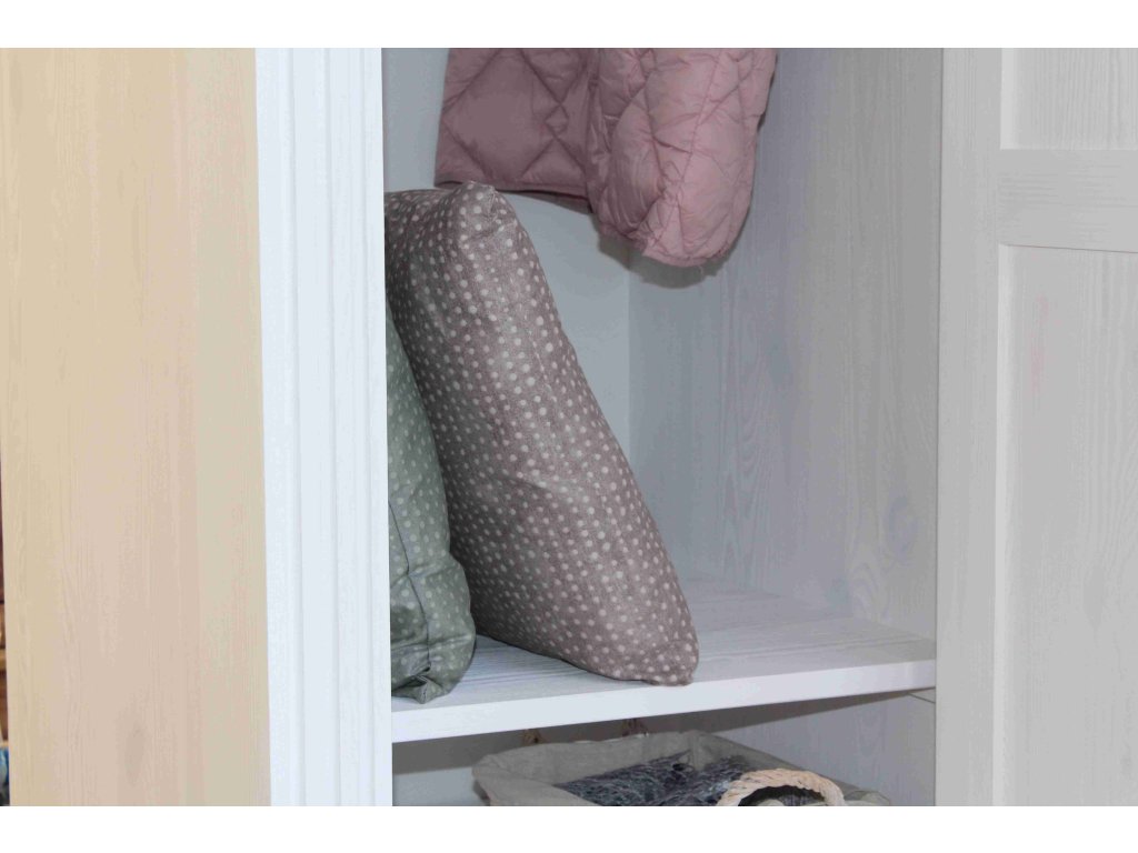 Rustikálny šatník SWEET HOME je masívna skriňa vyrobená z masívneho borovicového dreva (iba zadná strana je dyhovaná) a ošetrená bielou vodou riediteľnou farbou. Hnedé časti možno ošetriť voskom alebo lakom. Z dreva sú vyrobené aj zásuvkové lišty a police. Skriňu je možné zakúpiť aj ako jednodverové i trojdverová. Pre jednoduchšiu údržbu odporúčame objednať nábytok s hnedou vrchnou doskou v lakovanom vyhotovení.