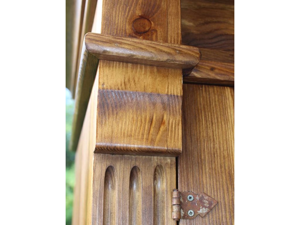 Rustikálny šatník SWEET HOME je masívna skriňa vyrobená z masívneho borovicového dreva (iba zadná strana je dyhovaná) a ošetrená bielou vodou riediteľnou farbou. Hnedé časti možno ošetriť voskom alebo lakom. Z dreva sú vyrobené aj zásuvkové lišty a police. Skriňu je možné zakúpiť aj ako jednodverové i trojdverová. Pre jednoduchšiu údržbu odporúčame objednať nábytok s hnedou vrchnou doskou v lakovanom vyhotovení.