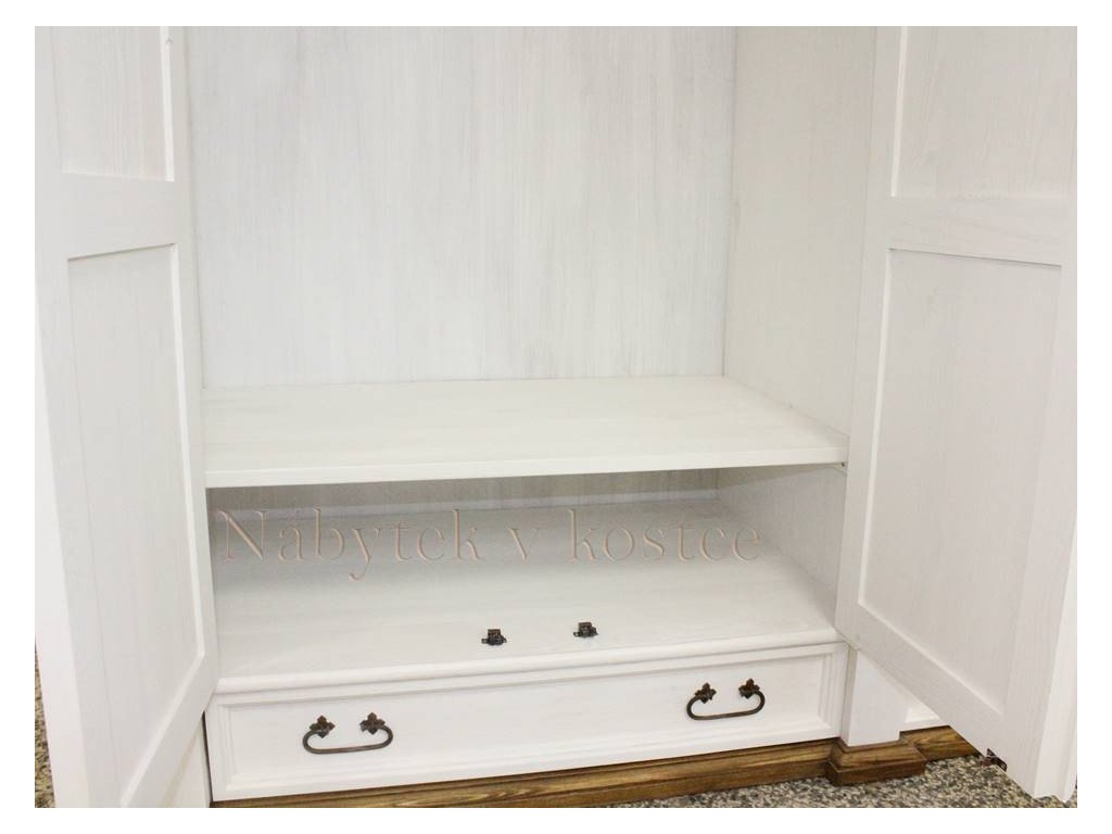 Rustikálny šatník SWEET HOME je masívna skriňa vyrobená z masívneho borovicového dreva (zadná strana je z drevenej dyhy) a ošetrená bielou vodou riediteľnou farbou. Hnedé časti možno ošetriť voskom alebo lakom. Z dreva sú vyrobené aj zásuvkové lišty a police. Skriňu je možné zakúpiť ako jednodverovú alebo dvojdverovú.