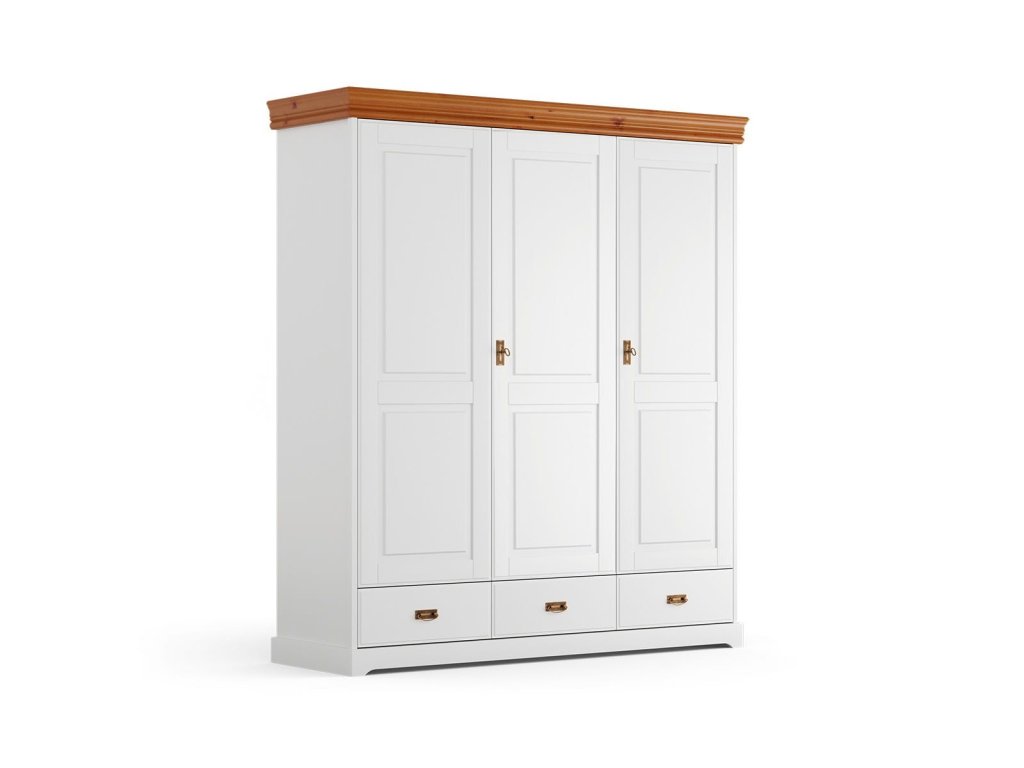 Rustikálna biela šatníková skriňa z masívneho dreva TOSKANIA.