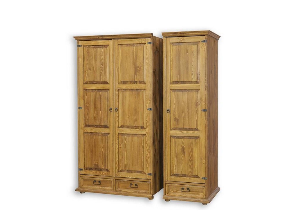 Rustikálna šatníková skriňa WHITE HOME je vyrobená z kvalitného borovicového masívu a ošetrená prírodným voskom. Za pozornosť určite stoja jeho pôvodné čierne kľučky a kovania. Zadná časť skrine je tiež vyrobená z dreva.