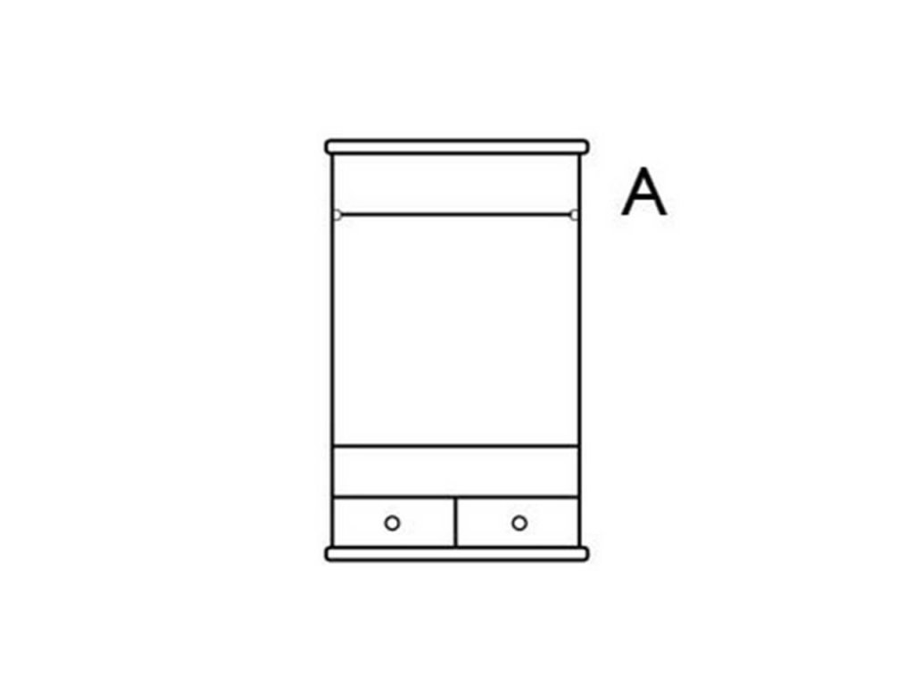 Rustikální šatní skříň WHITE HOME nabízíme rovněž ve variantě B/ kombinovaná a C/ s policemi.