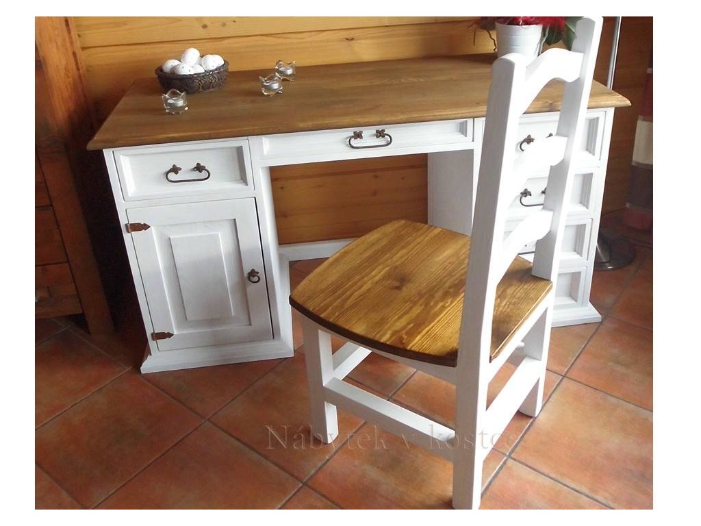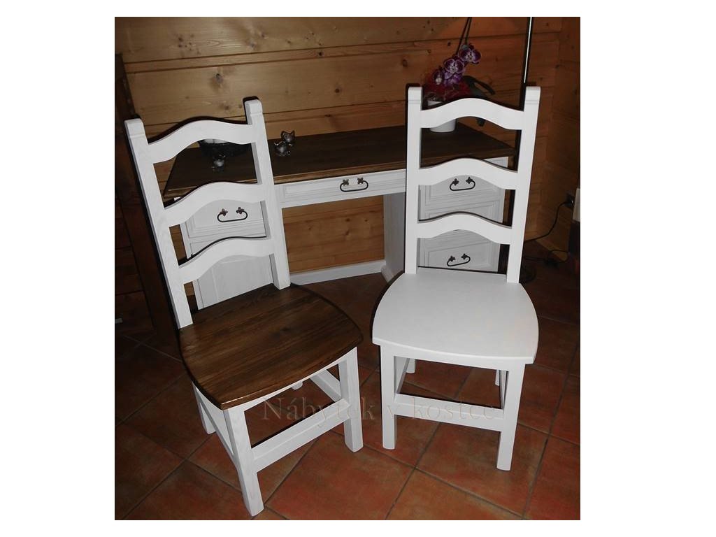 Rustikální židle SWEET HOME je vyrobena z borovicového masivního dřeva a je ošetřena bílou vodou ředitelnou barvou, anebo ve dvoubarevné kombinaci (viz. Vzorník). Pro snazší údržbu doporučujeme objednat nábytek s vrchní hnědou deskou v lakované verzi.