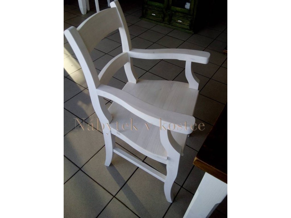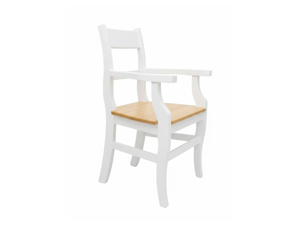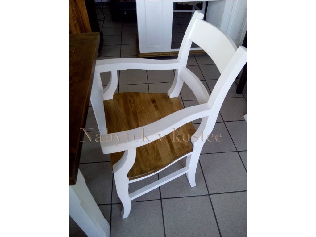 Rustikální židle SWEET HOME je vyrobena z borovicového masivního dřeva a je ošetřena pouze bílou vodou ředitelno barvou,anebo ve dvoubarevné kombinaci (viz.vzornik). Židle vyniká kvalitním zpracováním, které je zaručeno také tloušťkou použitého materiálu. Výška područky od země je 69cm, od sedáku 22,5 cm. Délka područky od opěradla je 43 cm, tloušťka područky je 4cm.