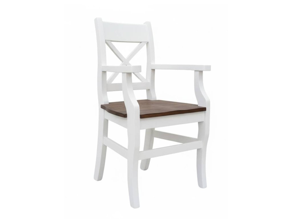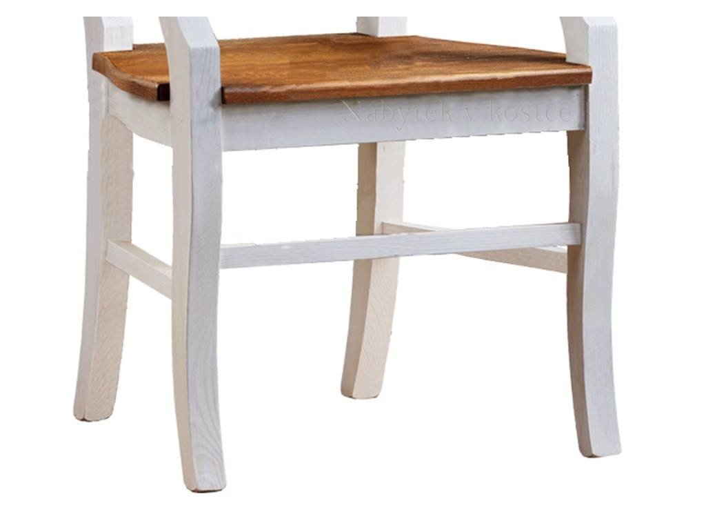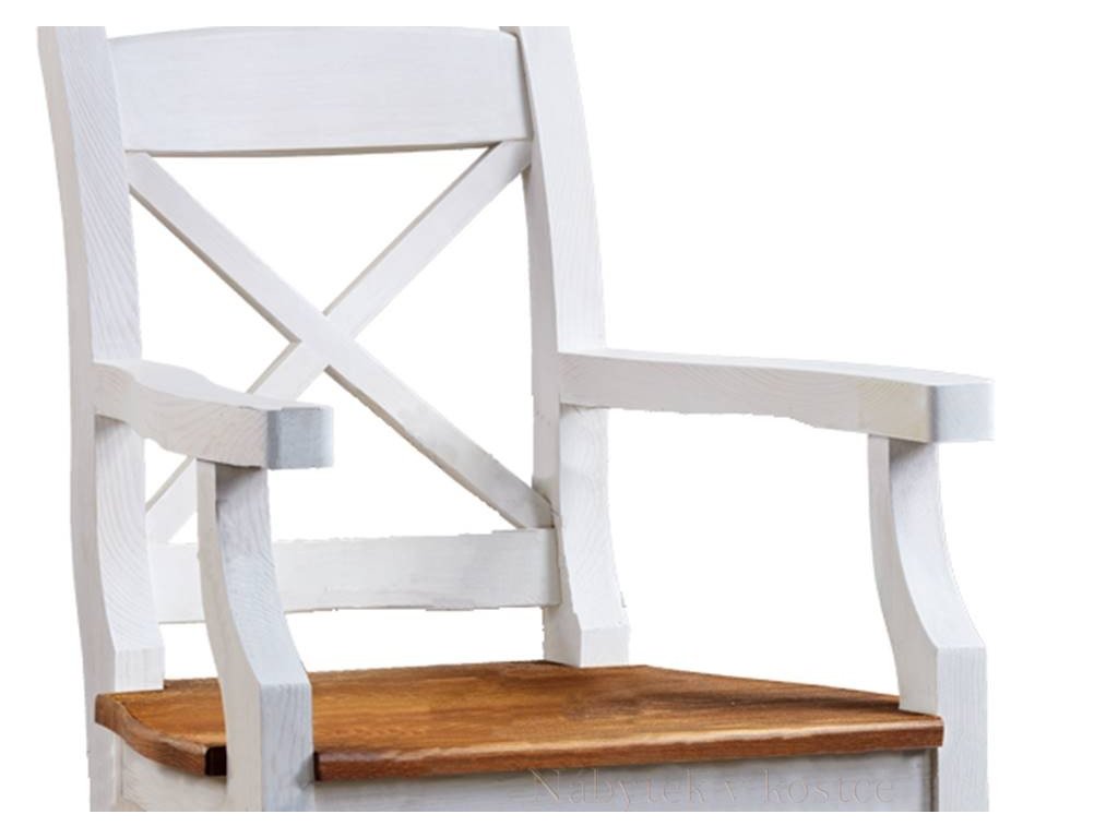Rustikální židle SWEET HOME je vyrobena z borovicového masivního dřeva. Horní deska může být ošetřena voskem anebo barevným pigmentem a následně lakem. Tato nádherná Bílo hnědá židle s područkami je vhodná do každé domácnosti. Působí velice elegantním dojmem, a navíc zajistí prostorné a pohodlné posezení. Židle vyniká kvalitním zpracováním, které je zaručeno také tloušťkou použitého materiálu. Výška područky od země je 69cm, od sedáku 22,5 cm. Délka područky od opěradla je 43 cm, tloušťka područky je 4cm.