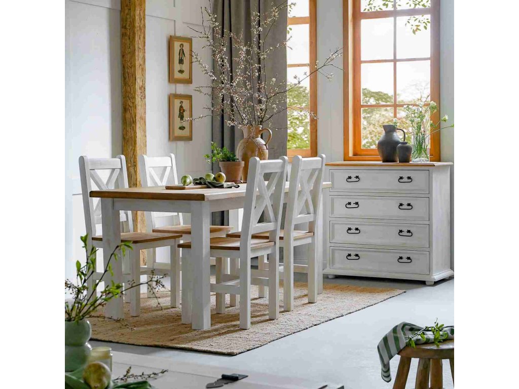 Rustikální jídelní židle WHITE HOME jsou vyrobeny z masivního borovicového dřeva vybraného tak, aby byly stabilní, a sloužily po mnoho let. O ošetření je postaráno díky ekologickým voskům, které jsou šetrné k životnímu prostředí a navíc dokáží vyzdvihnout přirozenou krásu borovicového dřeva.