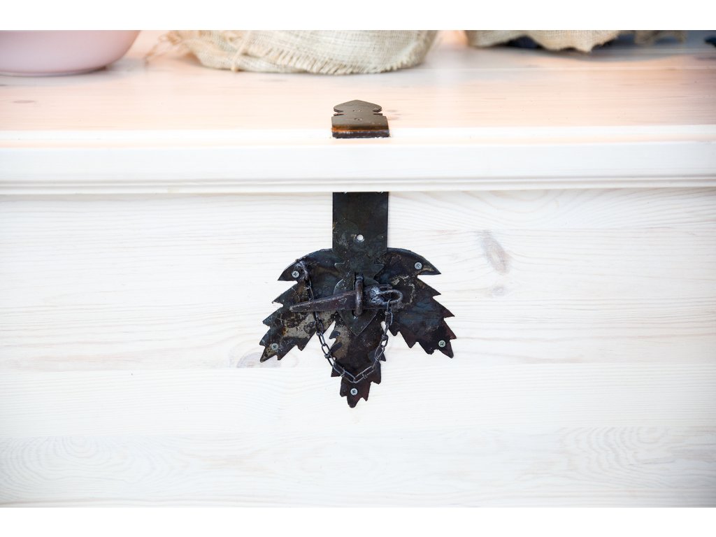 Rustikálna úložná komoda WHITE HOME je vyrobená z kvalitného borovicového masívu a ošetrená prírodným voskom. Za pozornosť určite stoja jeho pôvodné čierne kľučky a kovania.