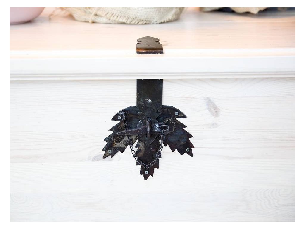 Rustikálna úložná komoda WHITE HOME je vyrobená z kvalitného borovicového masívu a ošetrená prírodným voskom. Za pozornosť určite stoja jeho pôvodné čierne kľučky a kovania.
