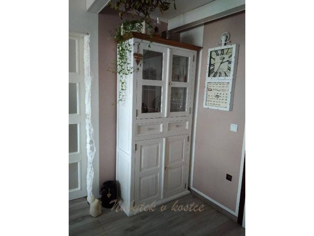Rustikálna vitrína SWEET HOME patrí medzi obľúbené produkty našich stálych zákazníkov. Vitrína je vyrobená z masívneho borovicového dreva a ošetrená voskom v bielej alebo bielo-hnedej farebnej kombinácii podľa vášho želania. Drevo sa používa aj na výsuvy zásuviek a zadnú stranu, vďaka čomu vitrína vyzerá naozaj luxusne a štýlovo.