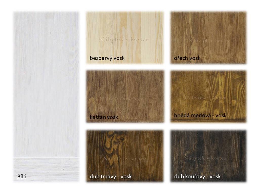 Lakovaný nábytok je lakovaný polomatným bezfarebným lakom najvyššej kvality. Takto ošetrený drevený nábytok nie je citlivý na vlhkosť, vodu a zmeny teploty. Lakovaný nábytok odolá všetkým týmto faktorom. Vďaka ochrannej vrstve laku je drevo dobre chránené pred poškodením a zmenou farby nábytku.