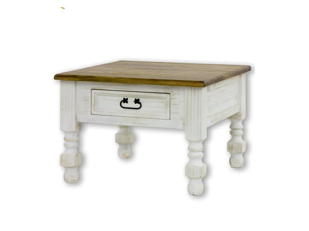 Rustikálny konferenčný stolík WHITE HOME MES 08 je vyrobený z masívneho borovicového dreva a ošetrený voskom v bielej alebo dvojfarebnej kombinácii podľa vášho želania. Konferenčný stolík ponúka aj zásuvku so štýlovými úchytkami.