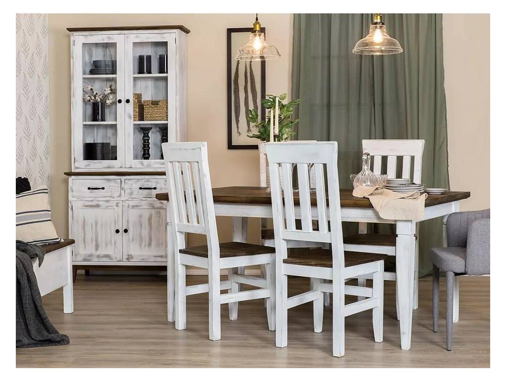 Rustikálny príborník KOLMAR je vyrobený z kvalitného masívneho borovicového dreva a ošetrený voskom. Vosk sa nanáša ručne pomocou štetca. V našej ponuke si môžete vybrať z niekoľkých farebných variantov vosku. Štandardný odtieň kolekcie KOLMAR je starožitná biela v kombinácii s hnedým voskom.