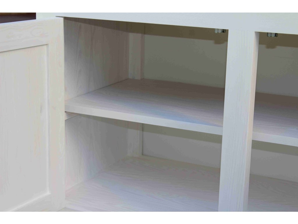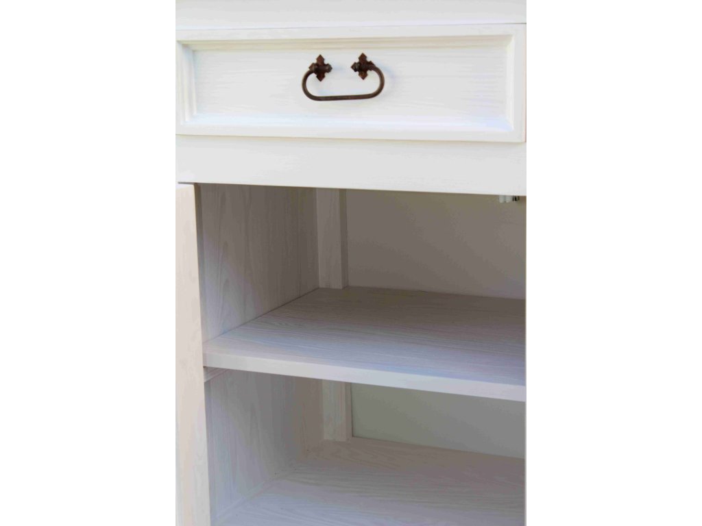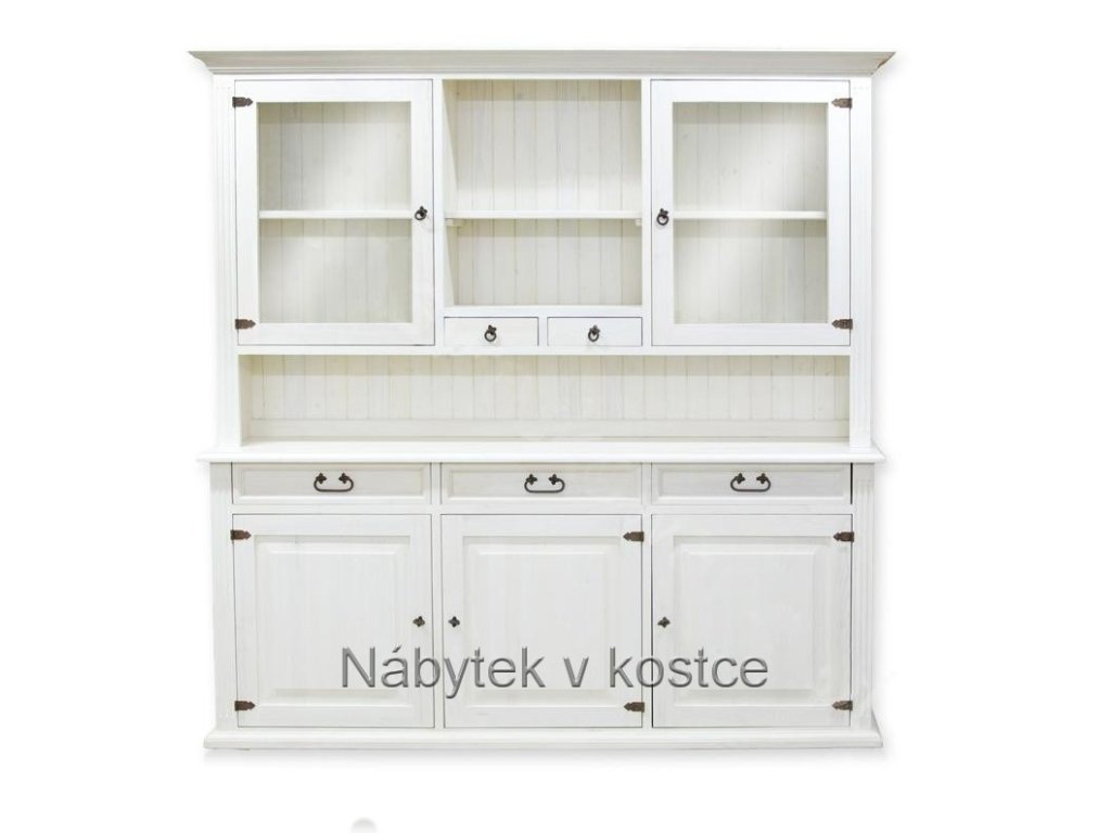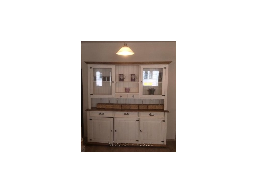 Rustikálny príborník SWEET HOME je masívny príborník alebo skrinka do jedálne a kuchyne , vyrobený z masívneho borovicového dreva a ošetrený bielou vodou riediteľnou farbou. Hnedé časti možno ošetriť voskom alebo lakom. Drevo sa používa aj na výsuvy zásuviek a zadnú stranu, vďaka čomu vitrína vyzerá naozaj luxusne a štýlovo.