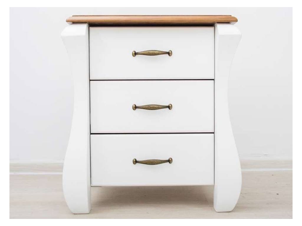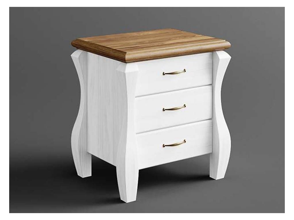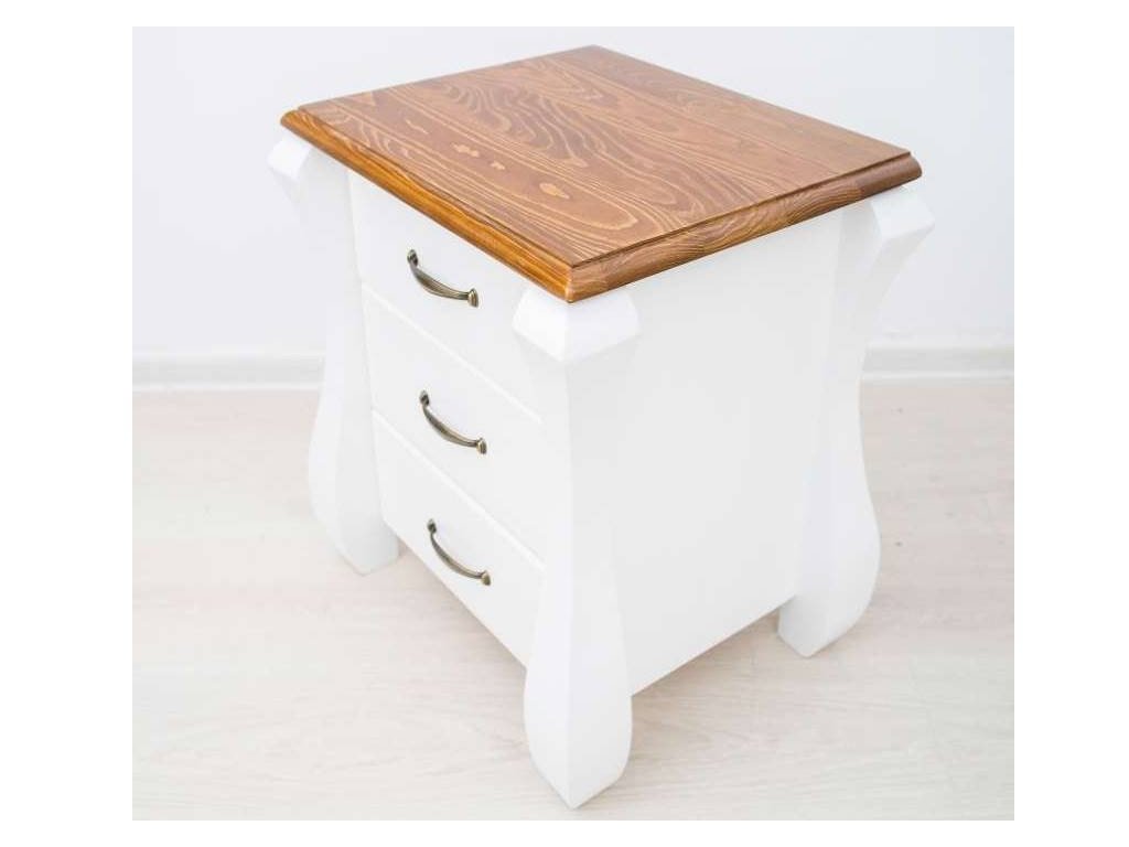 Biely romantický nočný stolík AUSTIN z masívneho borovicového dreva.