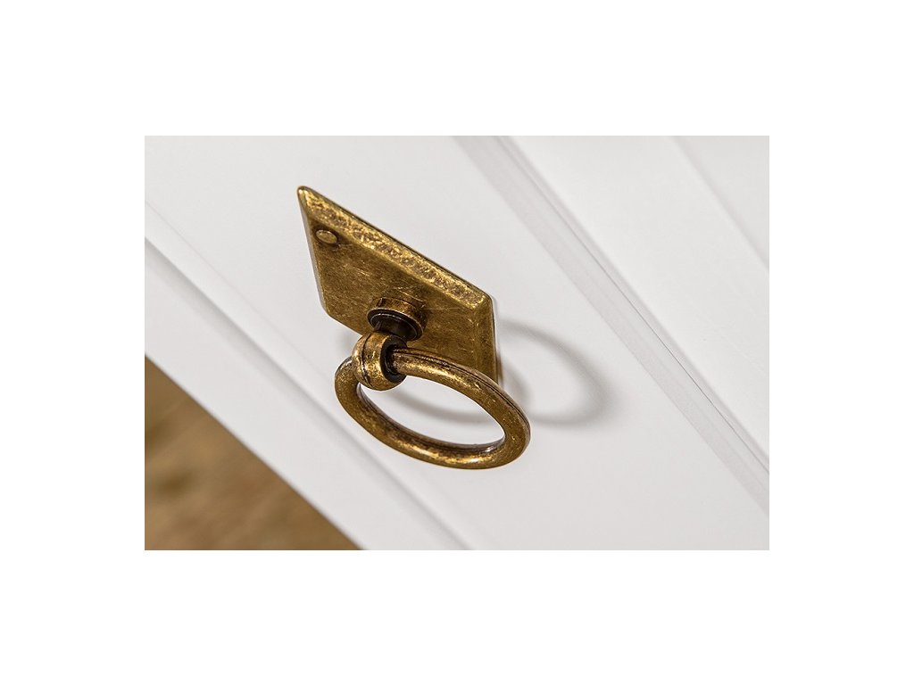 Rustikálny nočný stolík TOSKANIA z masívneho dreva ponúka zásuvku a skrinku s policou na praktické uloženie všetkých potrebných vecí. Na druhej strane, horná pevná časť je miestom, kde môžete vystaviť kvety alebo svoje obľúbené dekorácie. Kovové úchyty v starožitnom zlatom prevedení podčiarkujú toskánsky štýl tejto trojdverovej komody. Komoda je vybavená systémom tichého zatvárania.