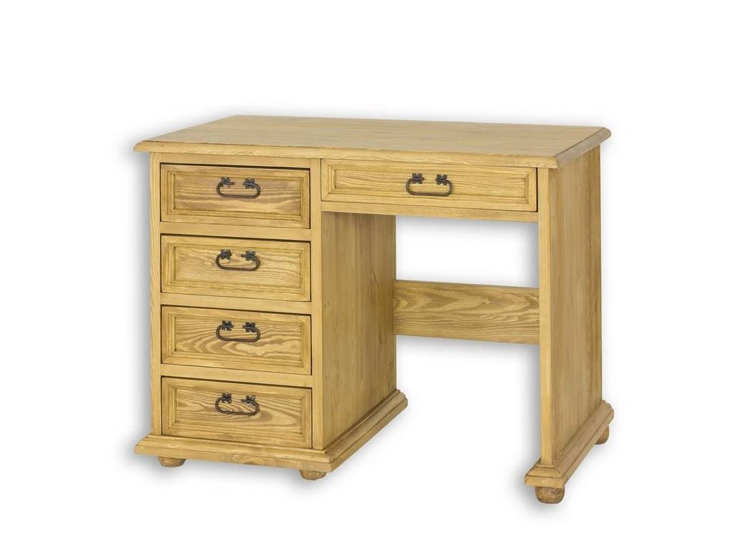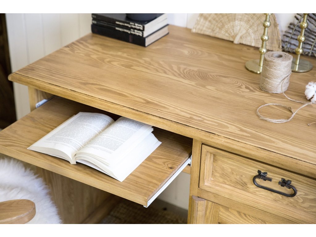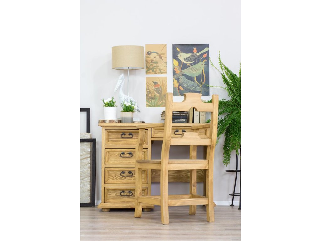 Písací stôl CORDOBA je vyrobený z kvalitného borovicového masívu. Zadná strana stola je vyrobená z drevenej dyhy a zásuvky sú v spodnej časti vyrobené z preglejky. Čelá zásuviek sú vybavené štýlovým kovaním.