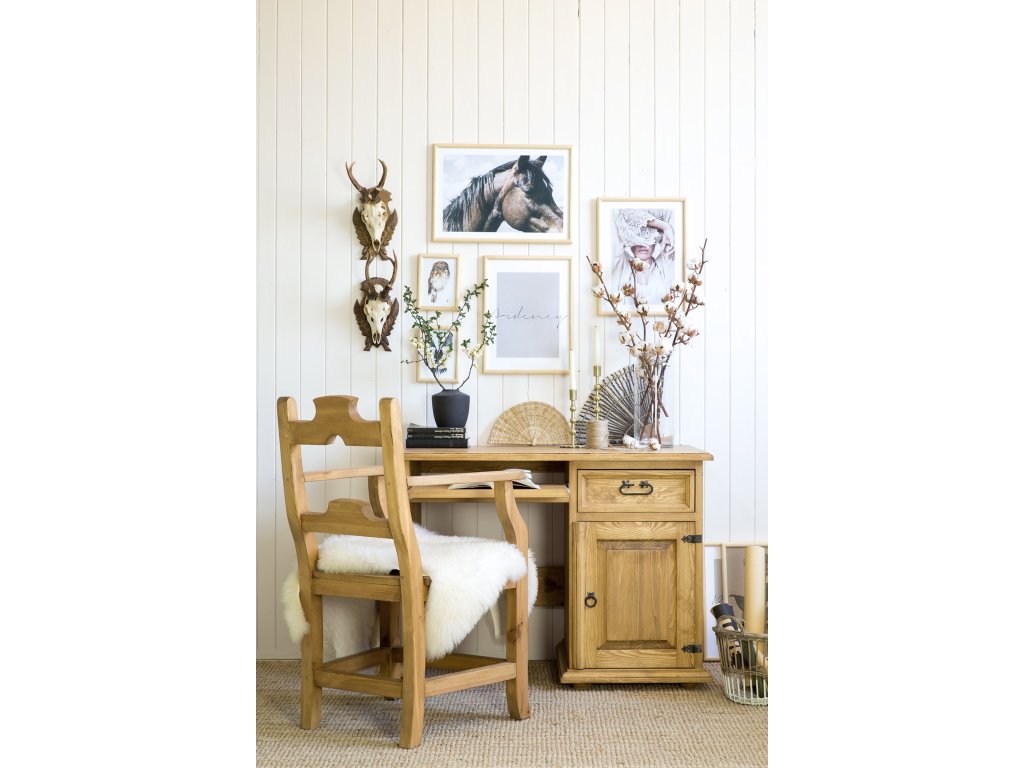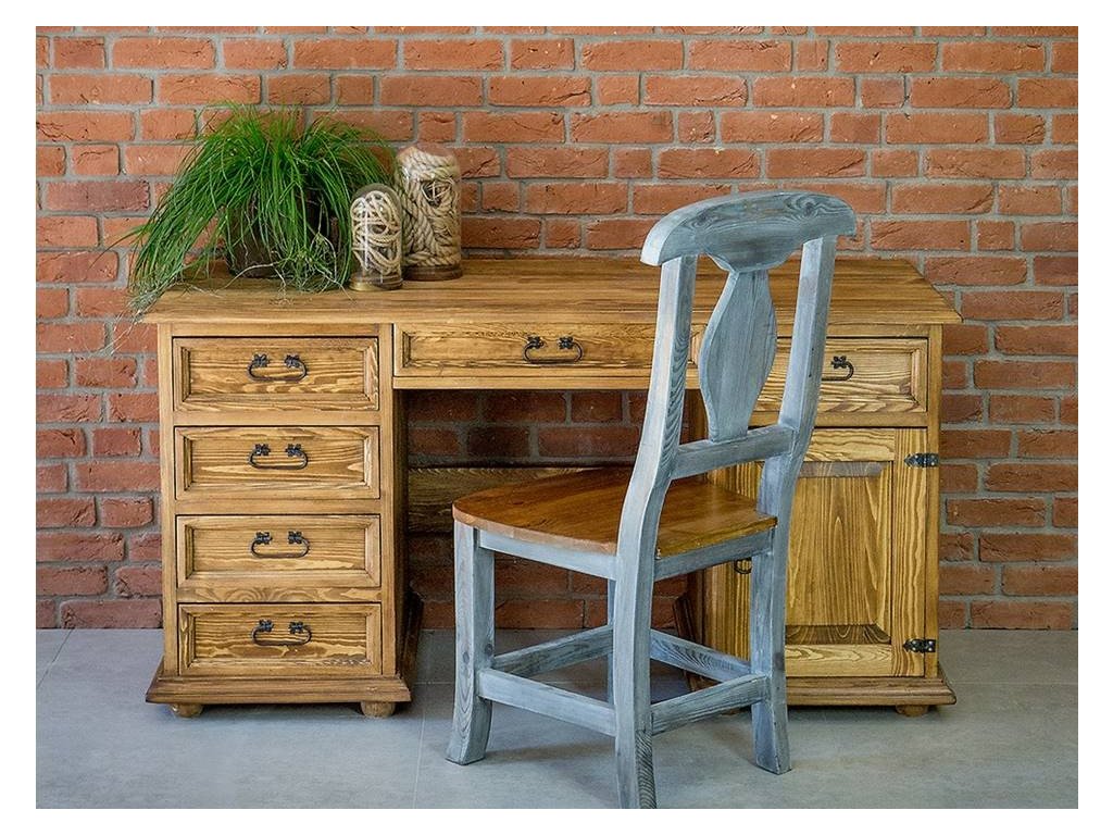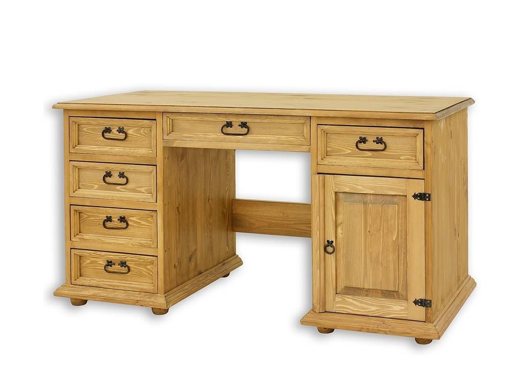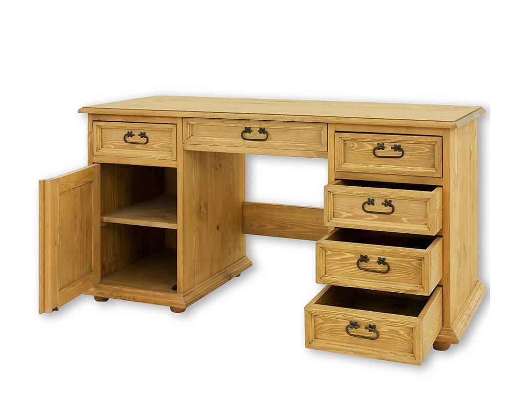 Písací stôl CORDOBA je vyrobený z kvalitného borovicového masívu. Zadná strana stola je vyrobená z drevenej dyhy a zásuvky sú v spodnej časti vyrobené z preglejky. Čelá zásuviek sú vybavené štýlovým kovaním.