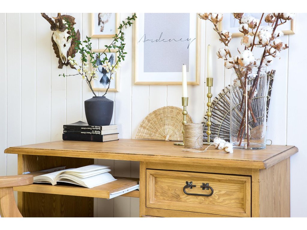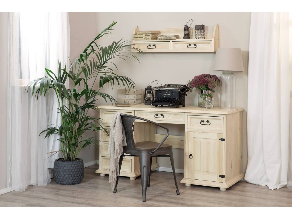 Rustikálny písací stôl WHITE HOME BIK 01 je vyrobený z masívneho borovicového dreva a ošetrený voskom v bielej alebo dvojfarebnej kombinácii podľa vášho želania. Zadná strana stola je vyrobená z prírodnej dyhy. Stôl ponúka policovú skrinku a zásuvku s originálnymi úchytkami na uloženie všetkého, čo máte radi.