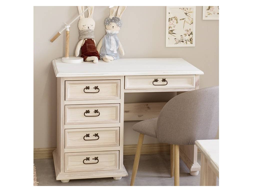 Rustikálny písací stôl WHITE HOME BIK 02 je vyrobený z masívneho borovicového dreva a ošetrený voskom v bielej alebo dvojfarebnej kombinácii podľa vášho želania. Zadná strana stola je vyrobená z prírodnej dyhy. Stôl ponúka zásuvky s originálnymi úchytkami na uloženie všetkého, čo máte radi.