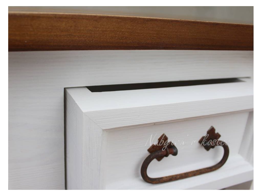 Rustikálny stôl SWEET HOME je vyrobený z masívneho borovicového dreva. Stôl z masívneho dreva je ošetrený iba bielou vodou riediteľnou farbou alebo dvojfarebnou kombináciou (pozri vzorkovník). Z dreva sú vyrobené aj zásuvkové lišty a police. Pre jednoduchšiu údržbu odporúčame objednať nábytok s hnedou vrchnou doskou v lakovanom vyhotovení. Rozmery zásuvky: šírka: 30 cm, výška: 12 cm, hĺbka: 33 cm.