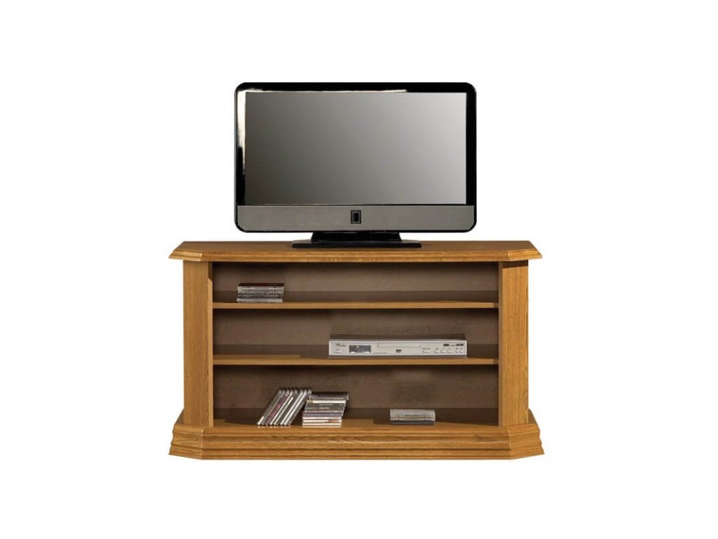 Televízny stolík KINGA I s ozdobnou rezbou ponúka priestor na DVD prehrávač a dekorácie. Televízny stolík v rustikálnom štýle stojí na ozdobnej podnoži, ktorá je rovnako ako vrchná doska vyrobená z lakovanej MDF, bočné časti sú z laminátu, predná časť je z dubového masívu. Televízny stolík môžete skombinovať s ďalším rustikálnym nábytkom z kolekcie KINGA a vytvoriť tak originálnu a štýlovú obývaciu izbu.