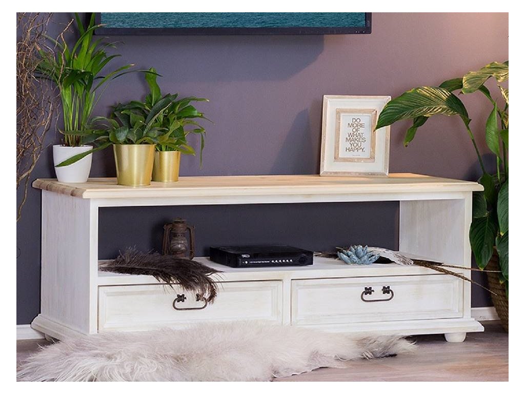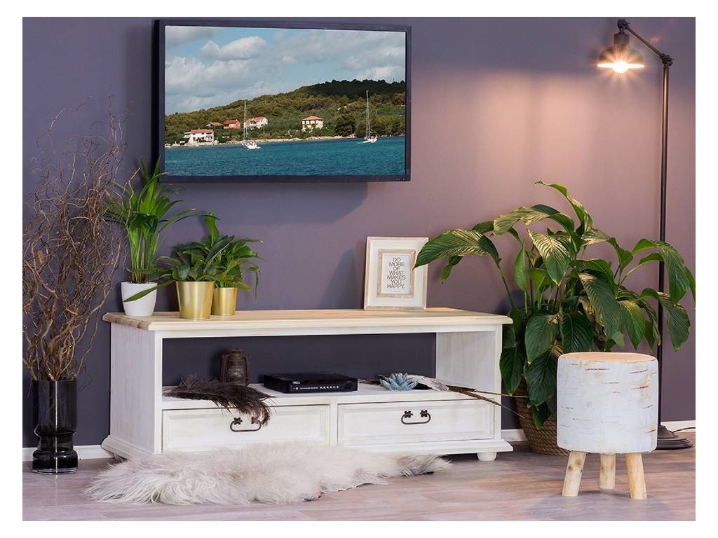 Rustikální TV stolek WHITE HOME RTV 05 je určen všem, kteří hledají pro své interiéry nábytek ve stylu Provence, retro nábytek, bílý venkovský a vesnický nábytek či selský nábytek.
