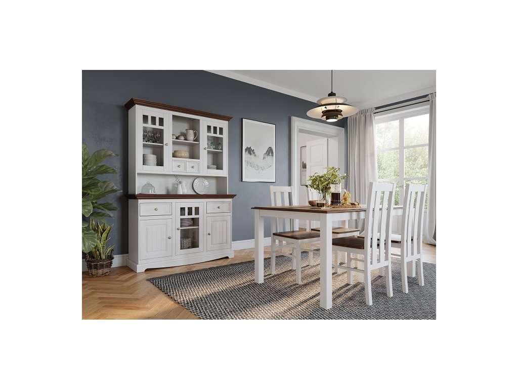 Rustikálna šatníková skriňa z masívu BELLUNO Elegante je vyrobená z masívnej fínskej borovice. Teplá biela farba, ktorá pokrýva povrch nábytku, krásne vyplní interiéry v provensálskom štýle, ako aj interiéry v škandinávskom štýle. Fínska borovica vyniká svojou odolnosťou a krásnou štruktúrou dreva, ktorú cítiť pri každom dotyku.