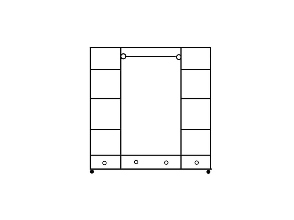 Šatníková skriňa DEJA1 ponúka veľký úložný priestor. Ozdobné oblúky v hornej časti dvierok zvýrazňujú krásu a eleganciu tejto skrinky . Veľké zrkadlá sú nielen ďalšou estetickou perlou,ale aj praktickou záležitosťou. Skriňa obsahuje jednu väčšiu a dve malé zásuvky, ktoré sú na kovových bežcoch. Po stranách sú police a v strede za zrkadlami je priestor so šatníkovou tyčou na zavesenie oblečenia. Zadná časť je vyrobená zo sololitu. Vhodným doplnkom k tejto skrini sú komody alebo vitríny.