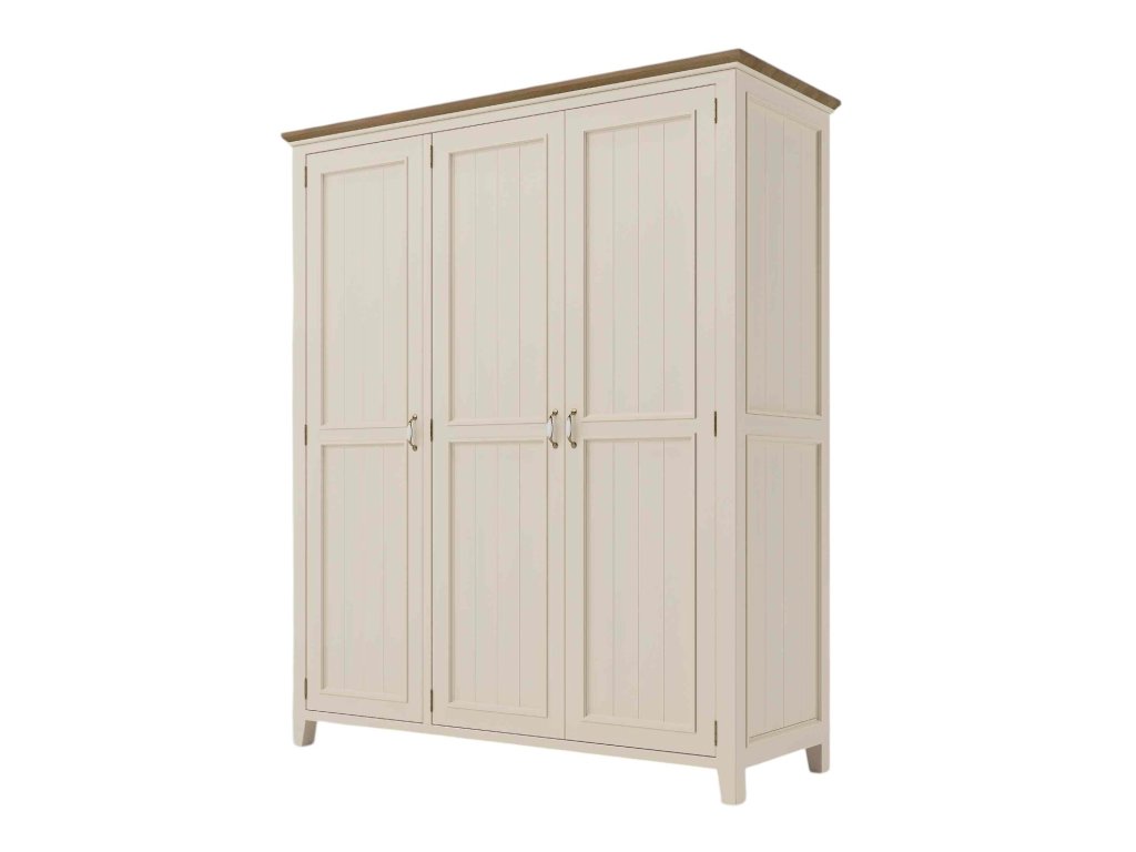 Masivní skříň PROVENCE je šatní skříň s šatní tyčí a policí vyrobená z masivního bukového dřeva, které je ošetřeno akrylovou barvou v krémovém odstínu, a z masivního dubového dřeva (horní deska), které je ošetřeno lakem. Díky spojení těchto dvou druhů masivního dřeva získala masivní skříň jedinečný vzhled, který zdokonalí veškerý interiér.