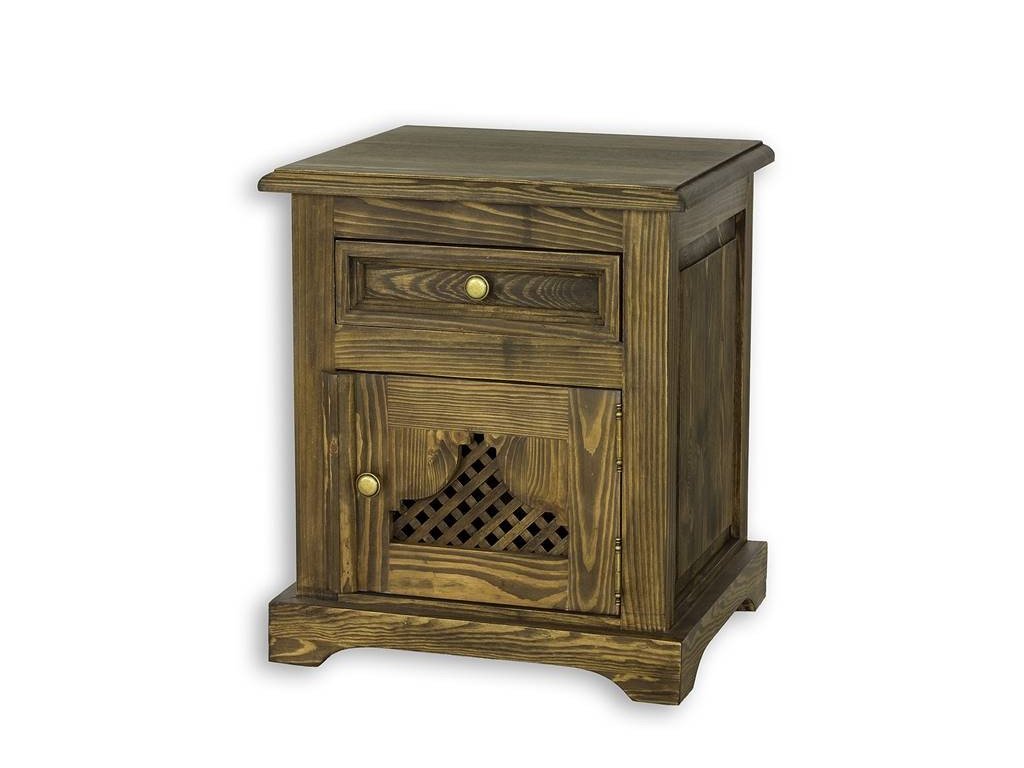 Rustikální skříň NATURA je vyrobena z jakostního masivního borovicového dřeva a ošetřena přírodním voskem, který zdůrazní přirozenou strukturu dřeva. Skříň vyniká mřížkovanými dveřmi, které působí vzdušně a elegantně a svými stylovýmí kovovými úchyty a kováním ve zlacené barvě.