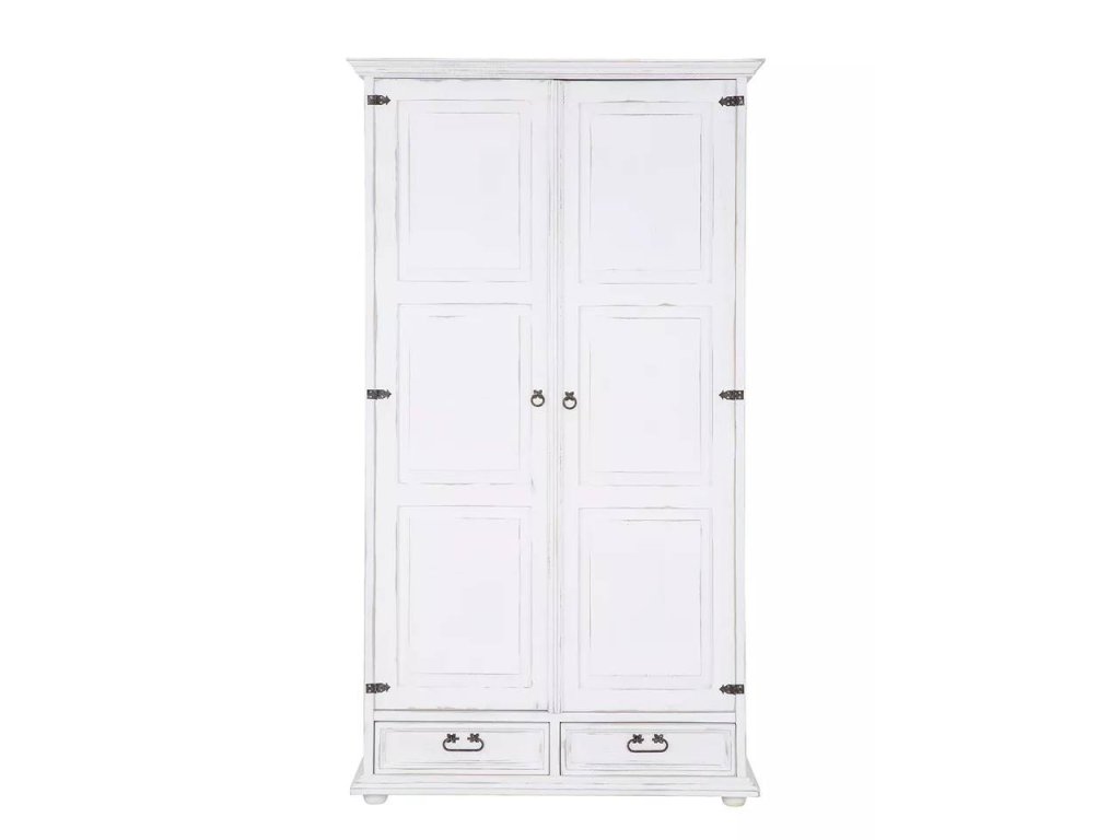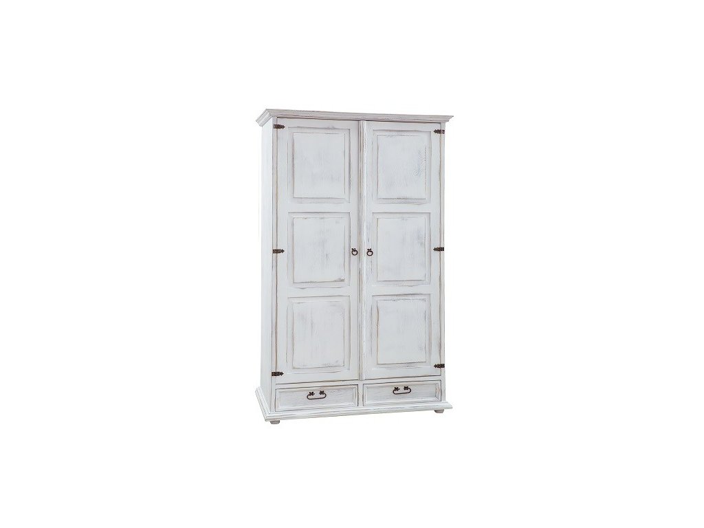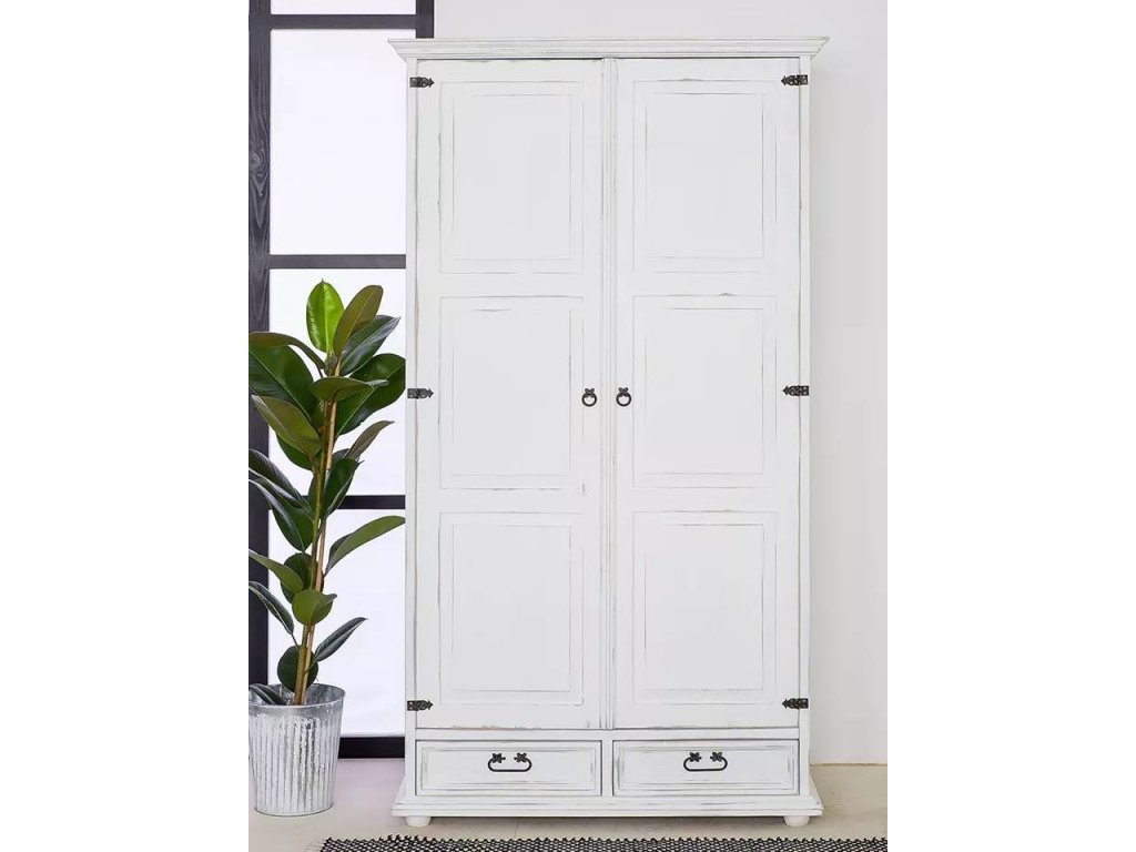 Rustikální šatní skříň WHITE HOME Slim SZY102 nabízíme rovněž v provedení - B/ kombinovaná a C/ s policemi. U každé varianty jsou dole 2 praktické šuplíky. Skříň je opatřena stylovými kovovými úchyty a panty.