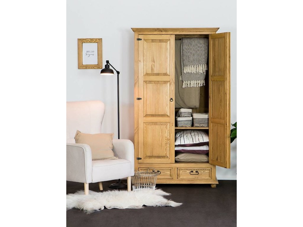 Rustikální šatní skříň WHITE HOME Slim SZY102 je zhotovená z masivní borovice a může být ošetřena voskem v barvě dle výběru. Díky stylovému kování působí tento nábytek elegantním a nadčasovým dojmem. Záda skříně jsou vyrobeny rovněž ze dřeva. Skříň nabízi šatní tyč a polici ve spodní části.