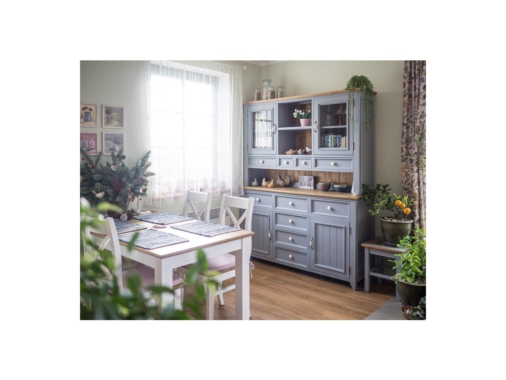 Kolekce PROVENCE to je stylový, vkusný a jemný nábytek v oblíbeném francouzském stylu. Nábytek PROVENCE je vyroben z masivního bukového dřeva a ošetřen akrylovou barvou v bílé, krémové, olivové či šedomodré barvě. Horní hnědé částí jsou vyrobeny z masivního dubového dřeva a ošetřeny lakem. Spojením těchto dvou materiálu jsme docílili opravdu velmi efektivního vzhledu, který hned tak nikdo nepřehlédne.