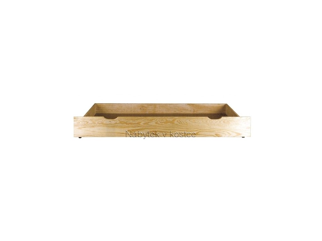 Šuplík pod postel je zhotoven z borovicového masivního dřeva a natřen ekologickým bezbarvým lakem. Výborně se hodí k ukládání ložního prádla nebo hraček pro děti. Šuplík má kolečka, díky nimž, lze zásuvka snadno vysunout z pod postele.