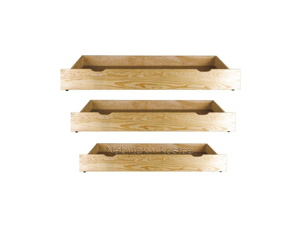 Šuplík pod postel je zhotoven z borovicového masivního dřeva a natřen ekologickým bezbarvým lakem. Výborně se hodí k ukládání ložního prádla nebo hraček pro děti. Šuplík má kolečka, díky nimž, lze zásuvka snadno vysunout z pod postele.