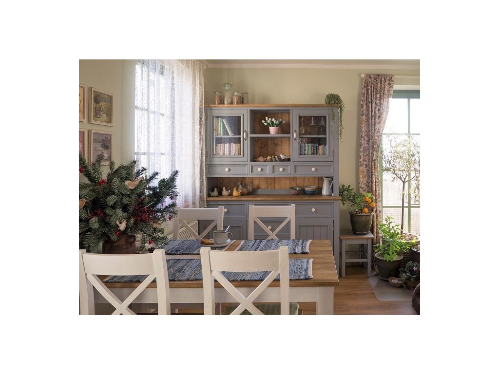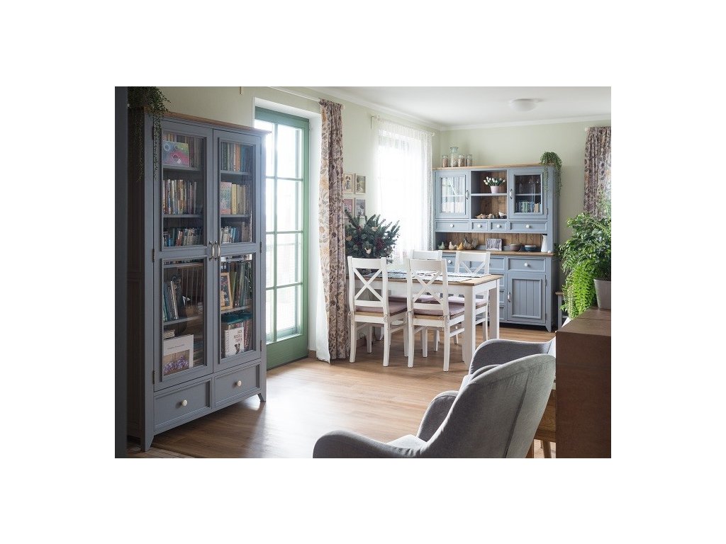 Nábytek kolekce PROVENCE je elegantní a vkusný nábytek v překrásném francouzském stylu. Nábytek je vyroben z velmi kvalitního bukového masivního dřeva a ošetřen akrylovou barvou v bílé, šedomodré, krémové a olivové barvě. Horní desky jsou vyrobeny z dubového masivního dřeva, které je ošetřeno lakem. Nábytek zvelebí veškerý interiér včetně obývacích pokojů, jídelen, ložnic a dalších místností Vašich domovů.